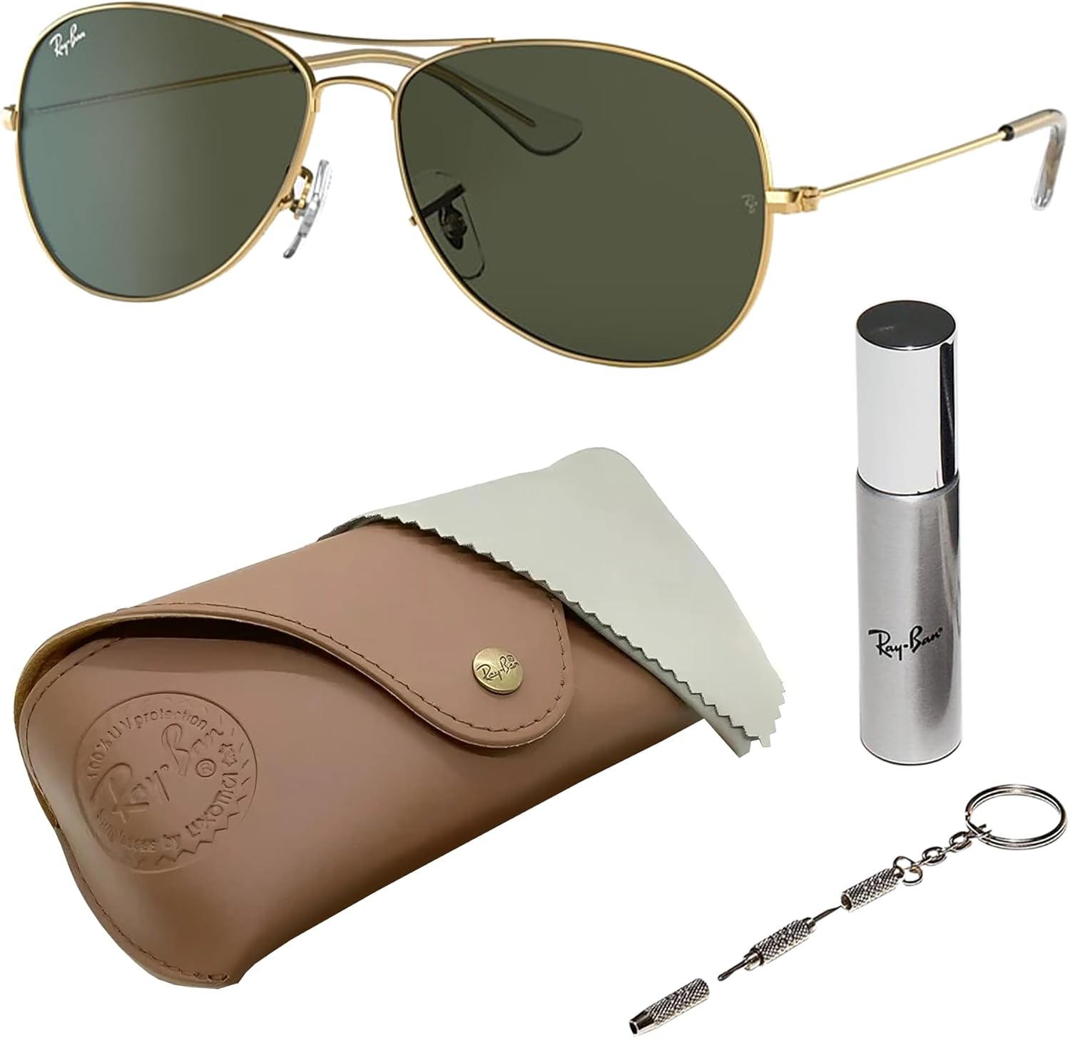 Ray-Ban RB3362 COCKPIT Pilot Shaped Non-Polarized Sunglasses for Men – Includes Official RAYBAN Eyewear Kit – Ideal Formal & Casual Wear Sunglasses – G-15 Green Lens