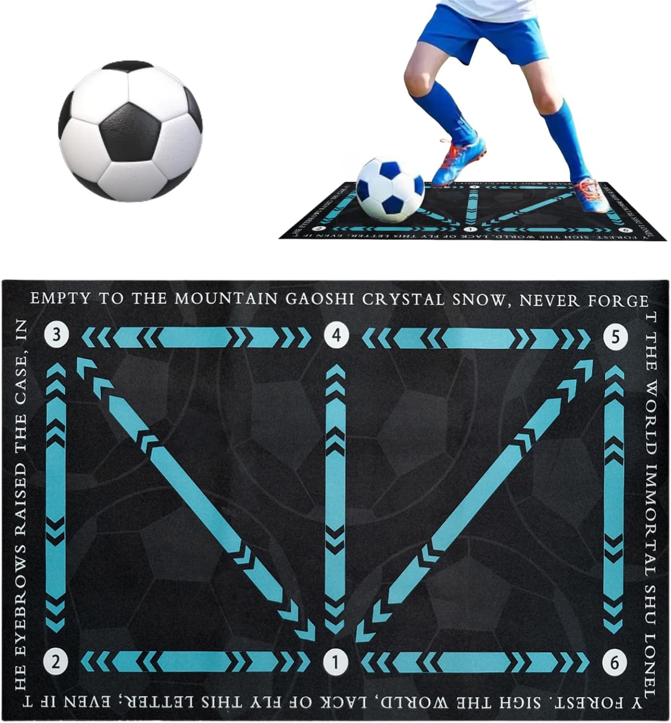 Train your soccer skills with this innovatively designed training mat! The non-slip surface provides a stable platform for perfecting your footwork, while the silent design lets you practice indoors without disturbing others. This specialized mat serves as your personal training ground for mastering ball control, improving agility, and developing quick feet through targeted drills. Perfect for people who love soccer, it helps build muscle memory for essential soccer movements and techniques. The durable construction withstands intense training sessions, making it ideal for year-round practice at home or in training facilities. Whether you're working on close ball control, step-overs, or complex footwork patterns, this training mat offers the ideal surface to enhance your performance.