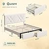 Powerful Storage Space: The upholstered bed frame comes with two extra storage drawers, offers convenient storage solutions for store sheets, accessories, and off-season clothing, keeping your bedroom clutter-free! Each drawer has four smooth wheels that make them easy to pull in and out.