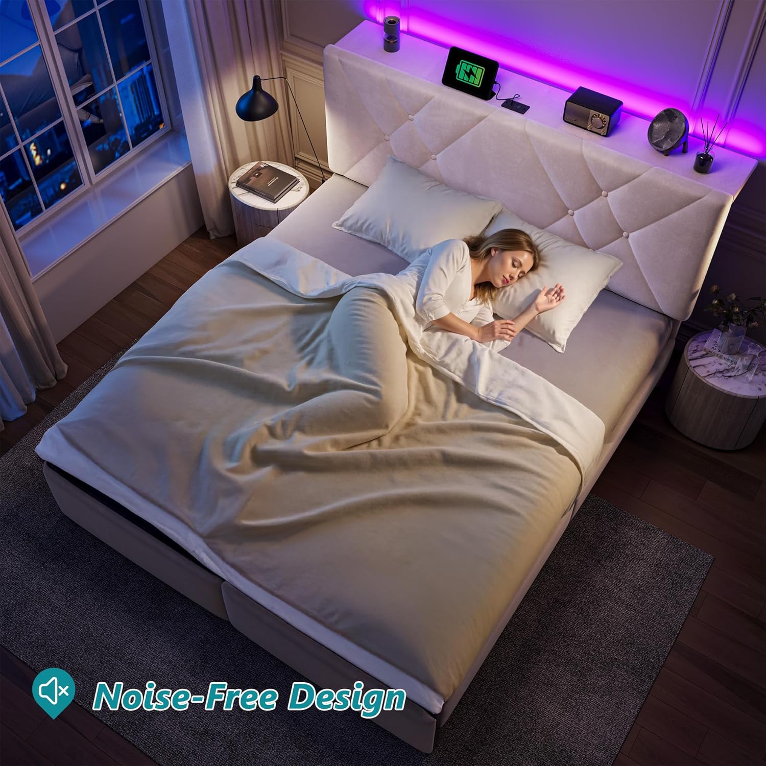 Smart Charging Station: This EnHomee queen bed frame features a built-in power plug with 2 charging station sockets and 1 Type-C port, making it easy to charge your phone, tablet, bluetooth, and other devices. You can charge up to three devices simultaneously, even while you sleep.