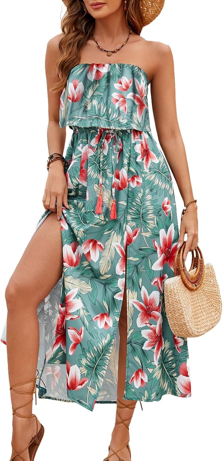 Women's Ruffle Floral Maxi Summer Casual Dress Off Shoulder Wedding Guest Slit Hem Beach Prom Dresses