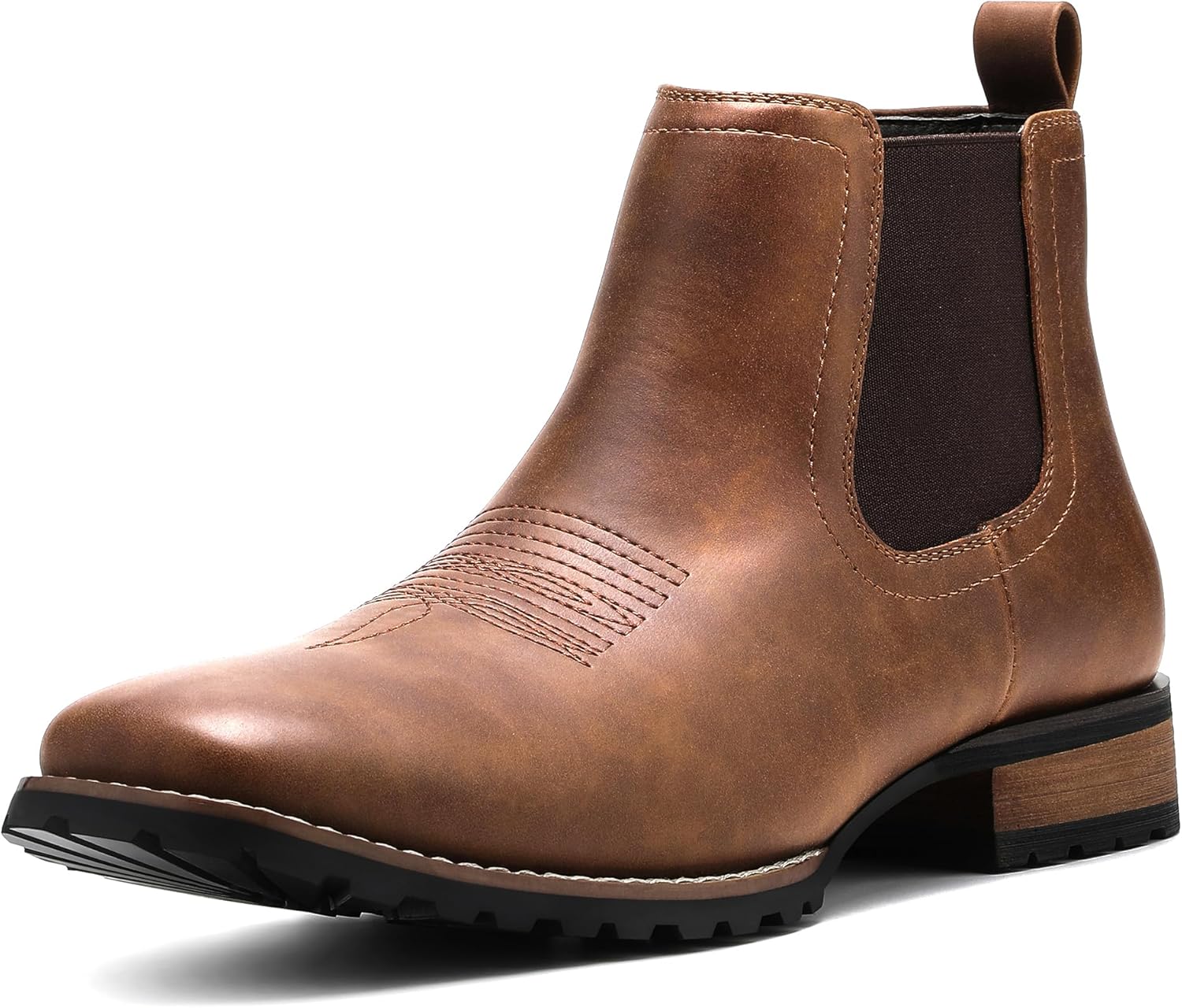 JASONSTAR Chelsea Cowboy Boots for Men Square Toe Western Boots Classic Casual Work Ankle Boots-botines para hombre