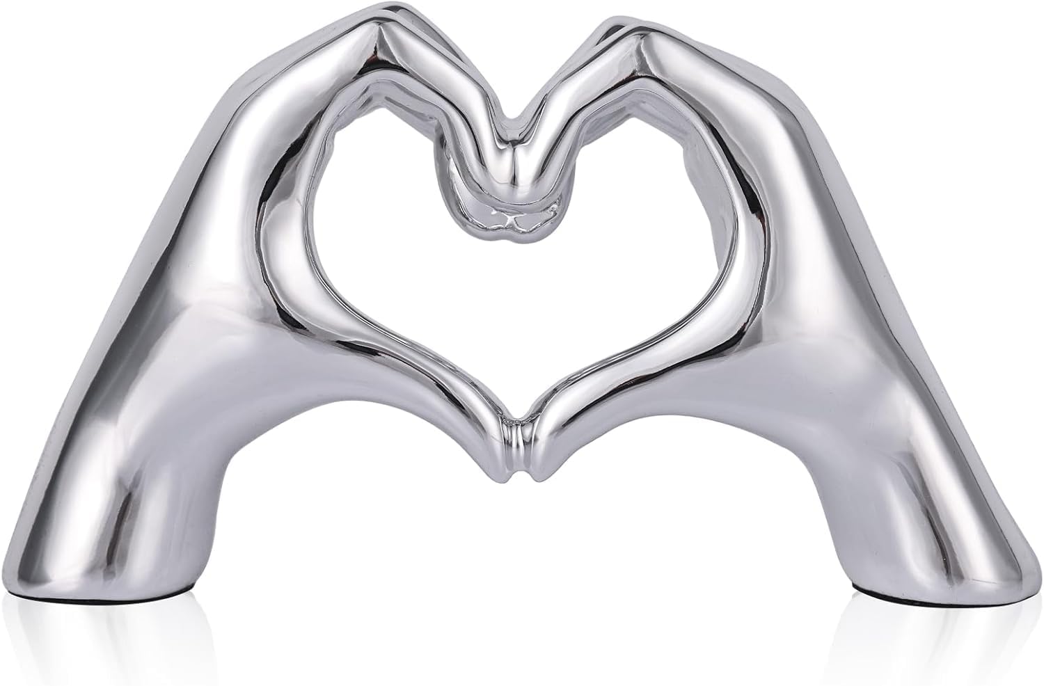 Silver Decor Small Heart Hands Sculpture for Living Room Bedroom Bookshelf Mantle Desk Decoration, Small Modern Home Decor Aesthetic for Wedding Anniversary Mother Decorations (4.13")