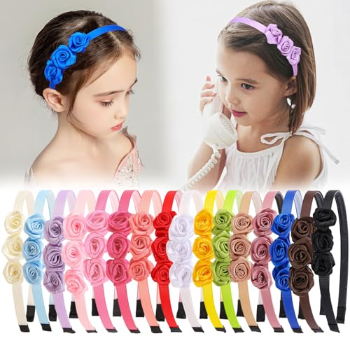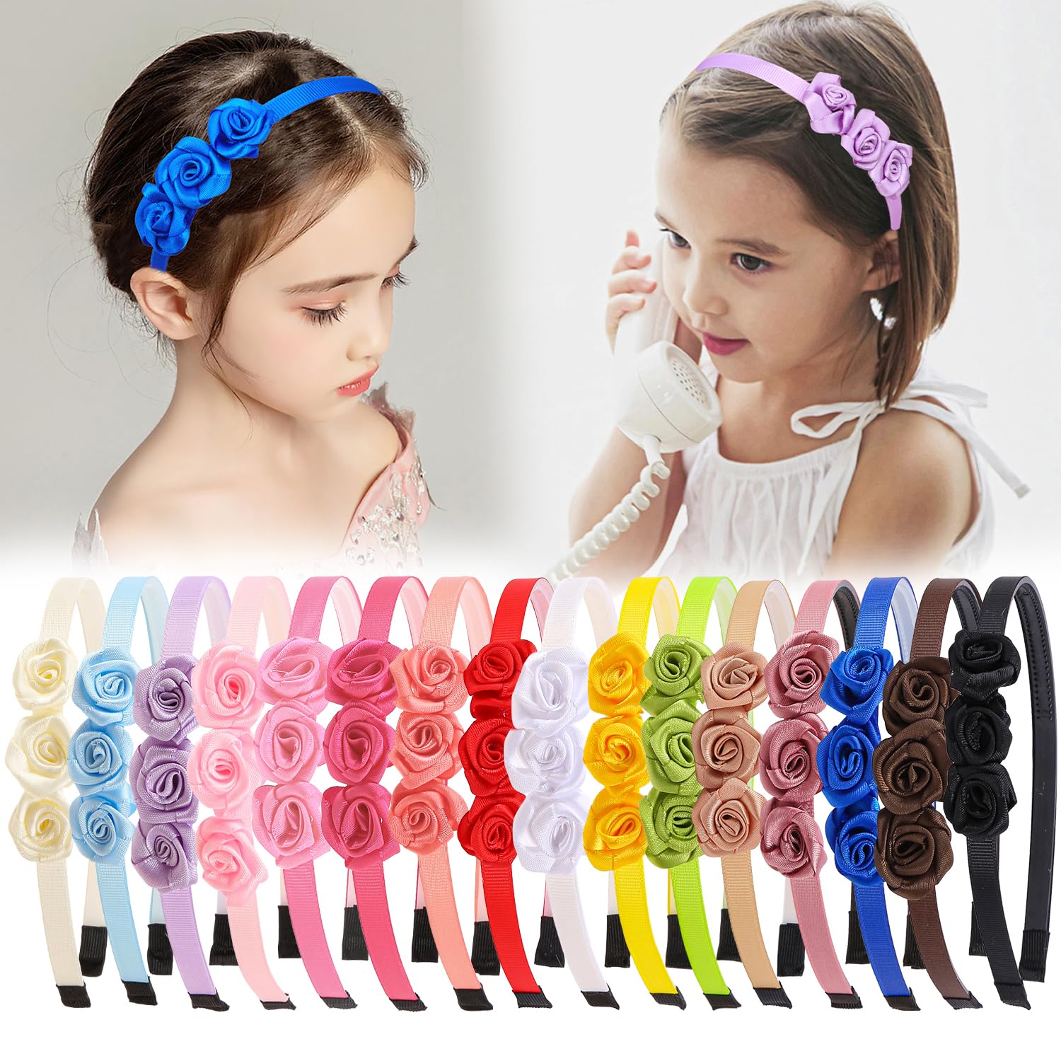 COMPLETE SET: Package includes 16 rose flower headbands in various colors including white, blue, purple, pink, red, yellow, green, brown and black,all colors are cute and beautiful