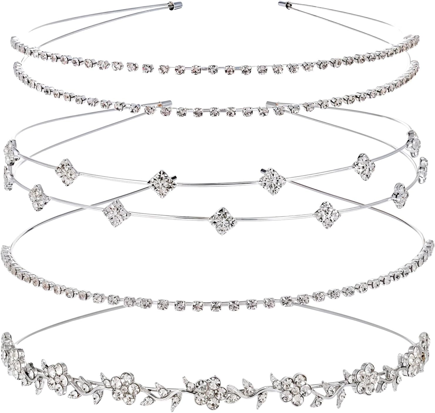 4 Pcs Rhinestone Headband Silver Bridal Wedding Headpiece Fancy Metal Prom Hair Accessories Crystal Flower Leaves Tiara Crown Hair Band for Women Girls