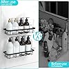 Transform your shower space with this sleek set of 2 metal shower caddies, designed to maximize storage while maintaining a minimalist aesthetic. Each bathroom decor and accessories measures 11 inches in length, 2 inches in depth, and 3.7 inches in height, providing ample space for your shower essentials. The black metal construction offers durability and style, while the integrated hooks add versatility for hanging loofahs, washcloths, or razors. The thoughtful design includes a sturdy frame with protective edges and strategic spacing between bars to prevent items from slipping through. Installation is straightforward with included adhesive mounts, requiring no drilling or permanent modifications to your bathroom walls. These bathroom organizers and storage are perfect for organizing shampoo bottles, conditioners, body wash, and other bathroom necessities in a neat, accessible arrangement. The modern, space-saving design complements any bathroom decor while keeping your shower area tidy and clutter-free.