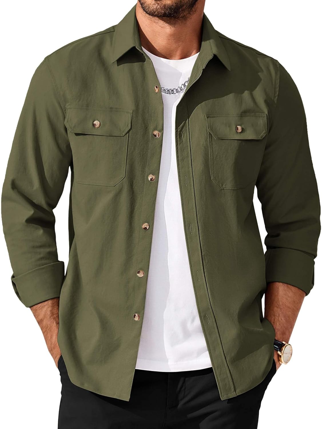 COOFANDY Mens Shirt Jacket Casual Button Up Shirts Long Sleeve Lightweight Shacket with Flap Pockets