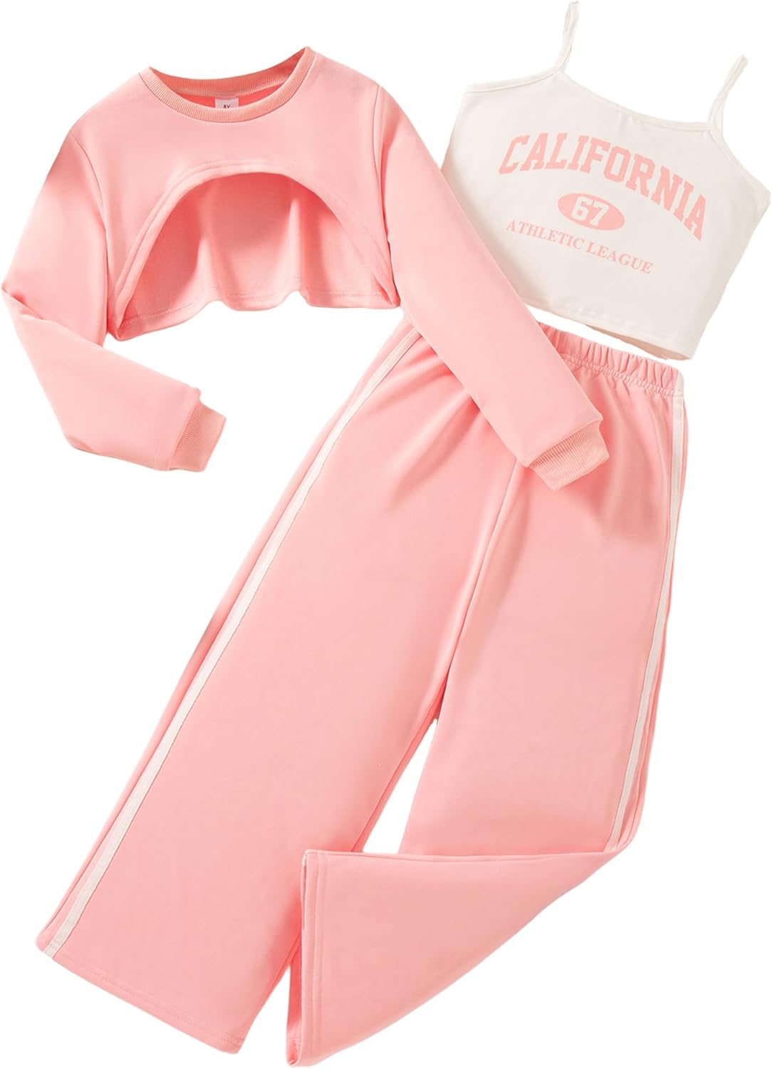 Girls 3 Piece Outfits Long Sleeve Crop Shirts & Cami Tops & Sweatpants Sets Fall Clothes Size 8-14Y