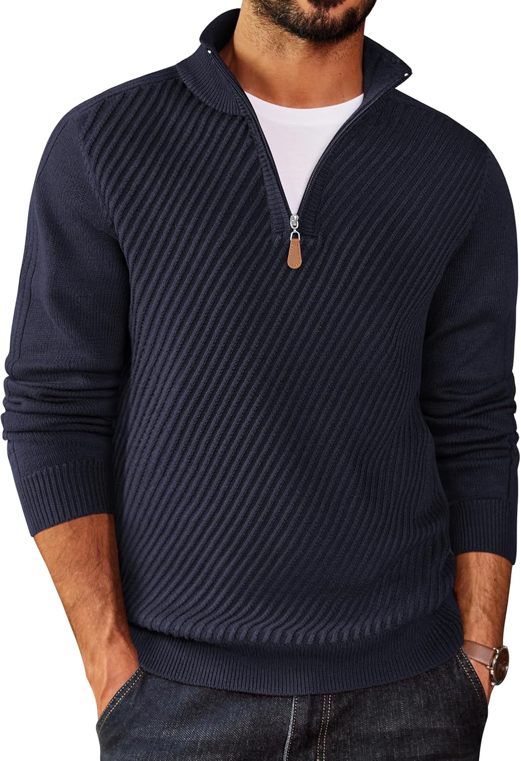 COOFANDY Mens Quarter Zip Sweater Casual Slim Fit Pullovers Sweaters Knit Twill Texture Pullover