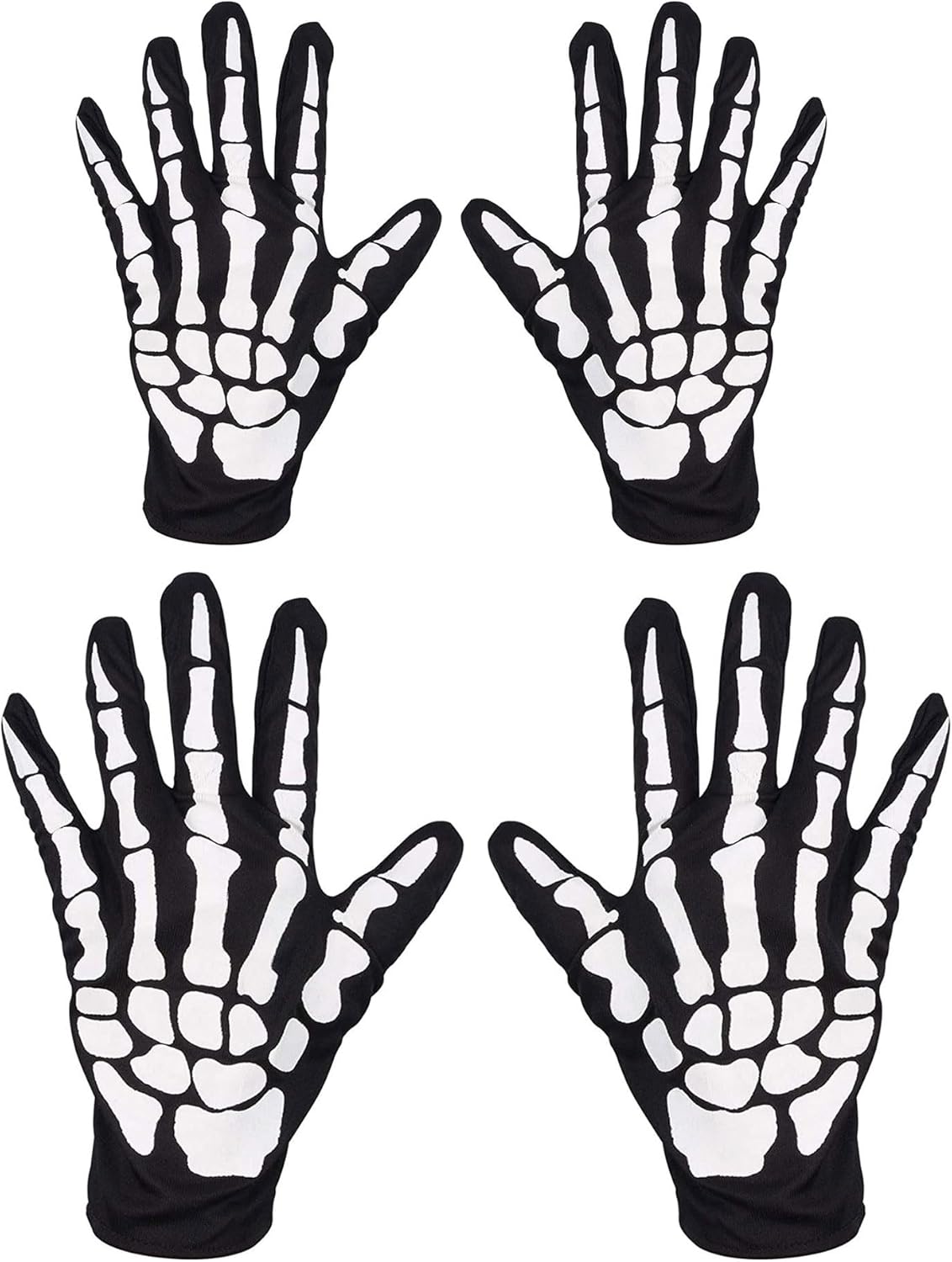 Add a spine-chilling touch to your Halloween festivities with this versatile 2-pair set of skeleton gloves from Yilistore. The set includes one pair sized for adults and one for kids, making it perfect for family costume coordination. Each pair features a striking black base with detailed white bone patterns that create a realistic skeletal hand design. The gloves are crafted to showcase anatomically-placed bones, from the delicate finger bones to the larger palm structures, creating an eerie yet fascinating effect. These accessories are ideal for completing various Halloween costumes, from classic skeletons to grim reapers or any spooky character. The stretchy material ensures a comfortable fit, while the bold contrast between the black background and white bone pattern ensures high visibility in various lighting conditions. Perfect for Halloween parties, trick-or-treating, costume contests, or haunted house events, these gloves add an extra layer of authenticity to any scary ensemble.