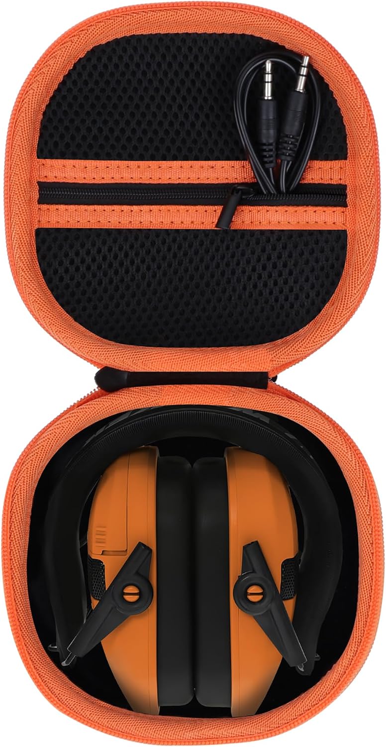 Storage Case Compatible with Walkers Razor Slim/PROHEAR 066 030 Electronic Shooting Earmuff Hearing Protection Muff (Black + Orange Case)