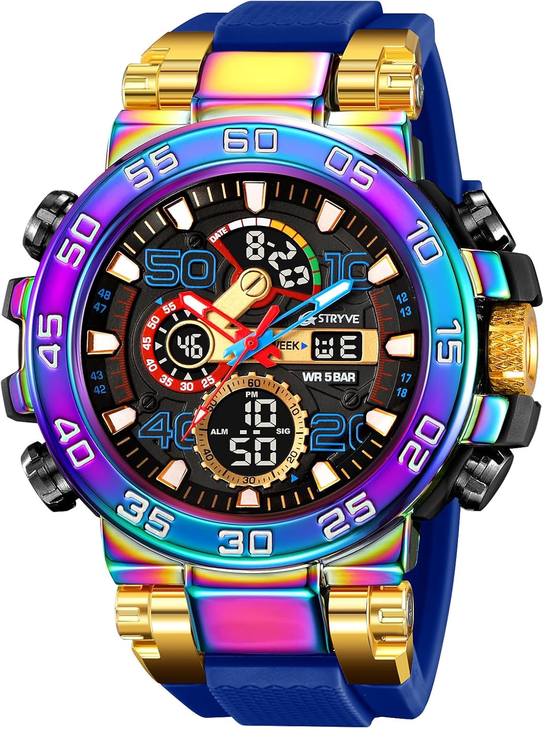 FANMIS Men's Watches Sports Military Watches Waterproof Color Designer Large Face Digital Analog Tactical Outdoor Men's Wristwatches-Chronograph Dual Time LED Alarm Stopwatch