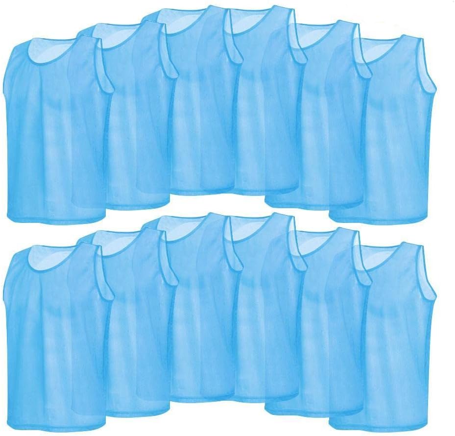 Breathable Football Vests, 12Pcs Premium Polyester Soccer Practice Vests for Adults - Size:64(L) x 54cm(W) - Blue