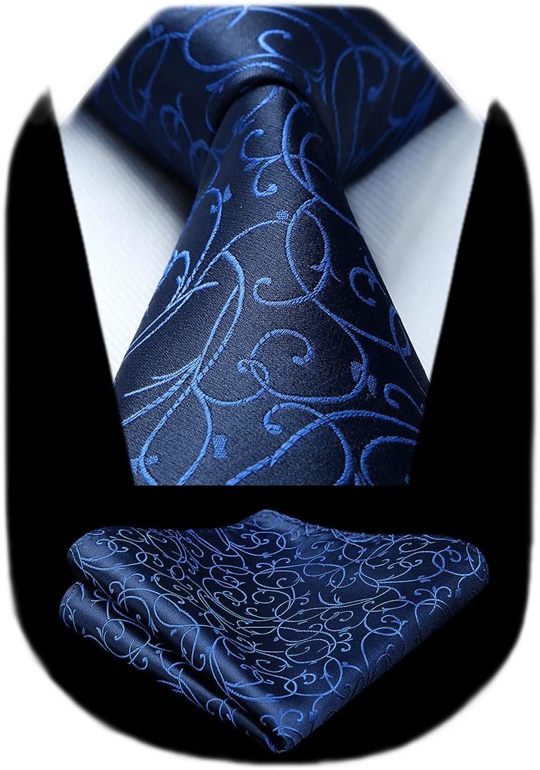 HISDERN Men Floral Ties Woven Classic 3.4" Necktie Set Formal Tie Pocket Square for Wedding with Handkerchief Gift Box