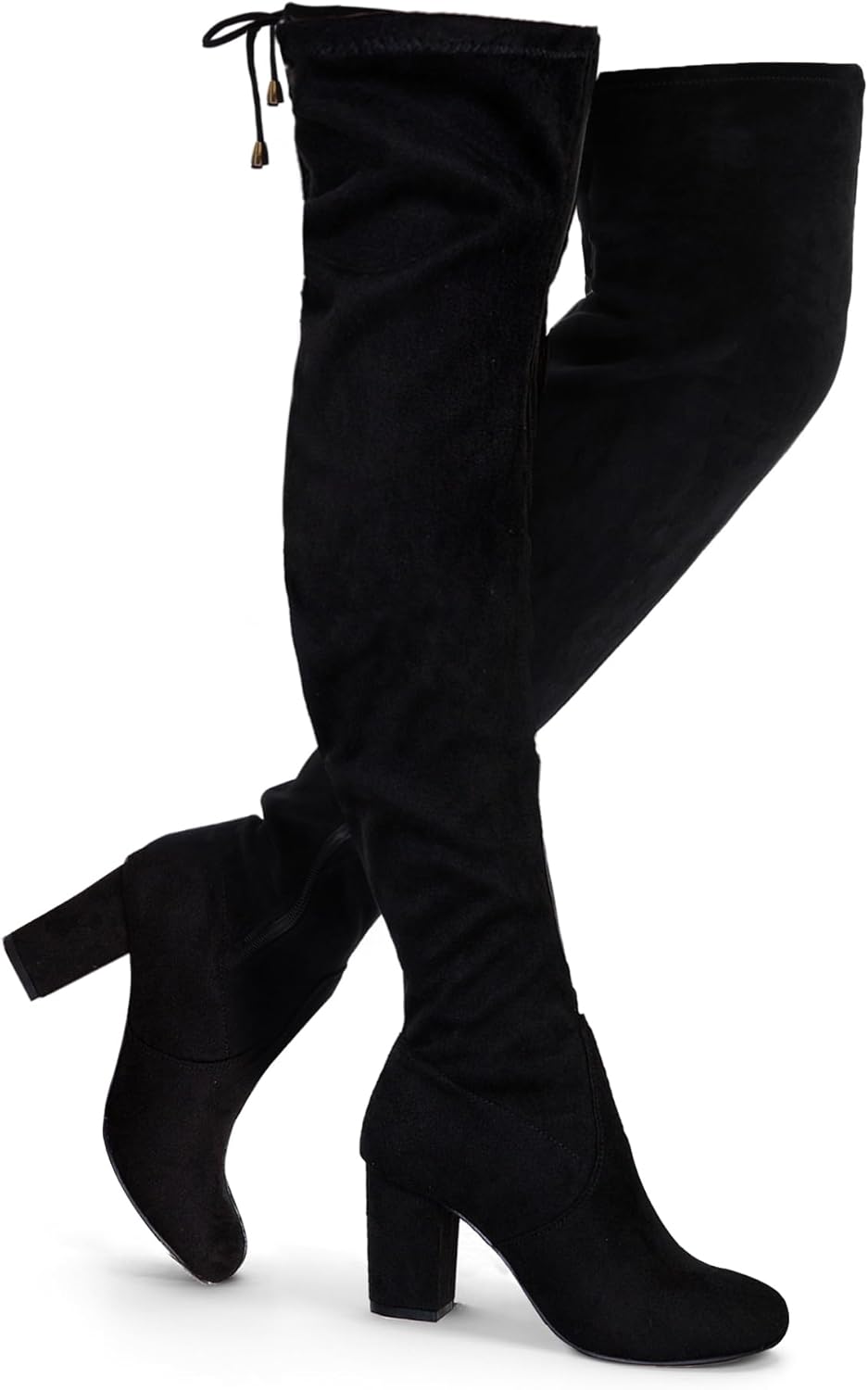 Vepose Women's Over The Knee High Boots Suede Thigh High Boot 3 Inch Chunky Heels Zipper Adjustable Opening Shoes