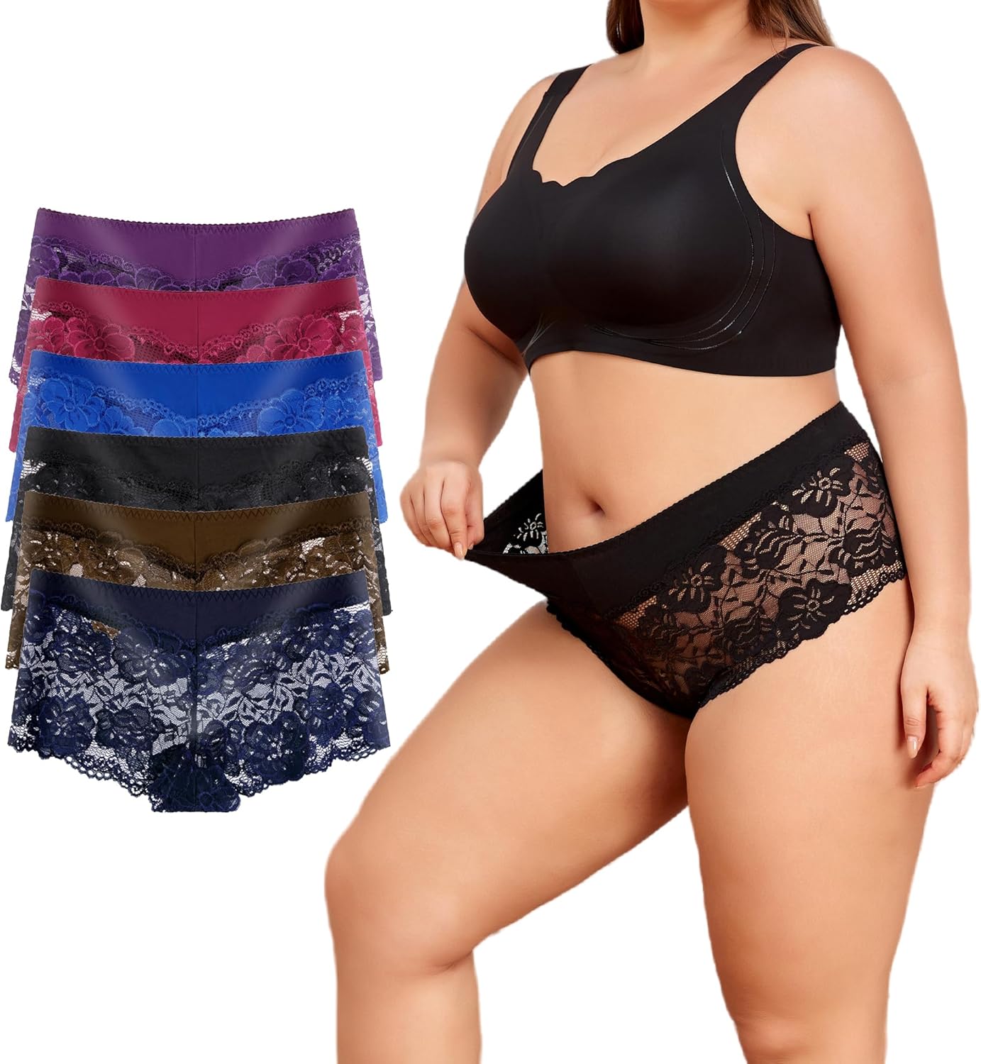 moonlight elves Women's Underwear Lace Boyshort Panties Regular & Plus size Cheeky Panty for Ladies, Pack 6, Size S-5XL