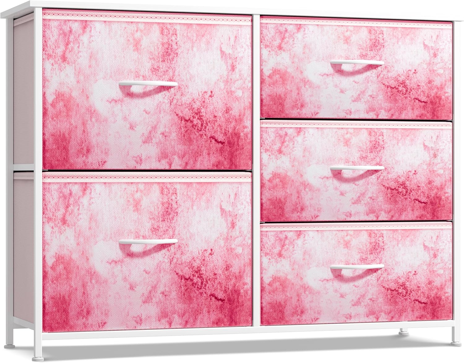 Sorbus Kids Dresser with 5 Drawers - Storage Chest Organizer Unit with Steel Frame, Wood Top & Handles, Tie-dye Fabric Bins for Clothes - Wide Furniture for Bedroom Hallway Kids Room Nursery & Closet
