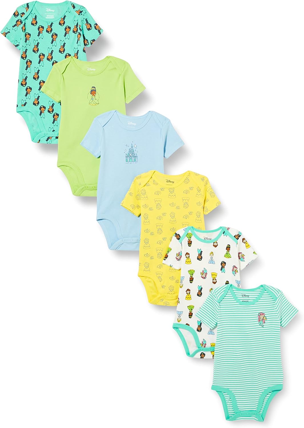 Amazon Essentials Disney | Marvel | Star Wars | Princess Baby Girls' Short-Sleeve Bodysuits, Pack of 6