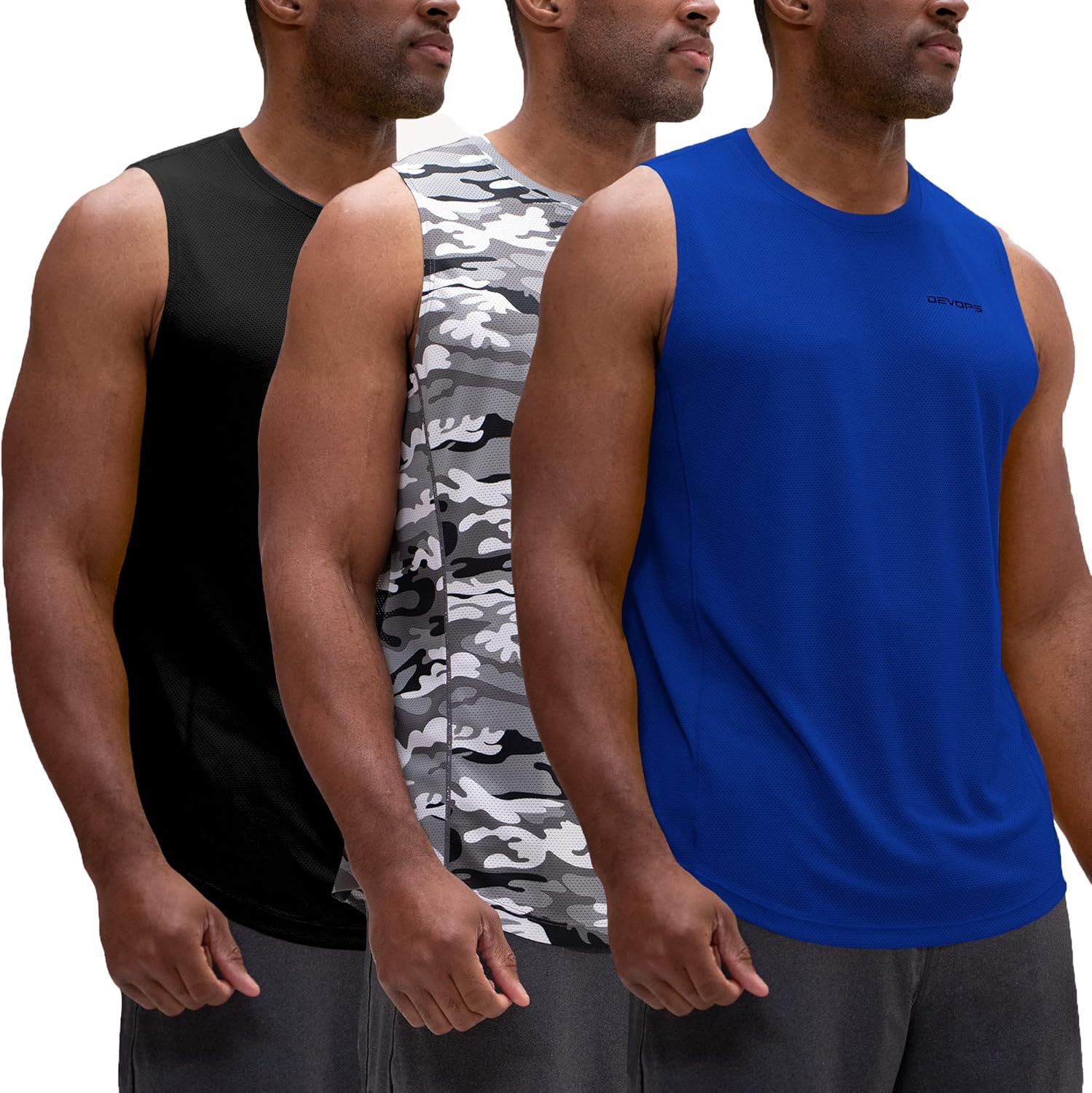 DEVOPS 3 Pack Sleeveless Men's Muscle Shirts Dry Fit Tank Top