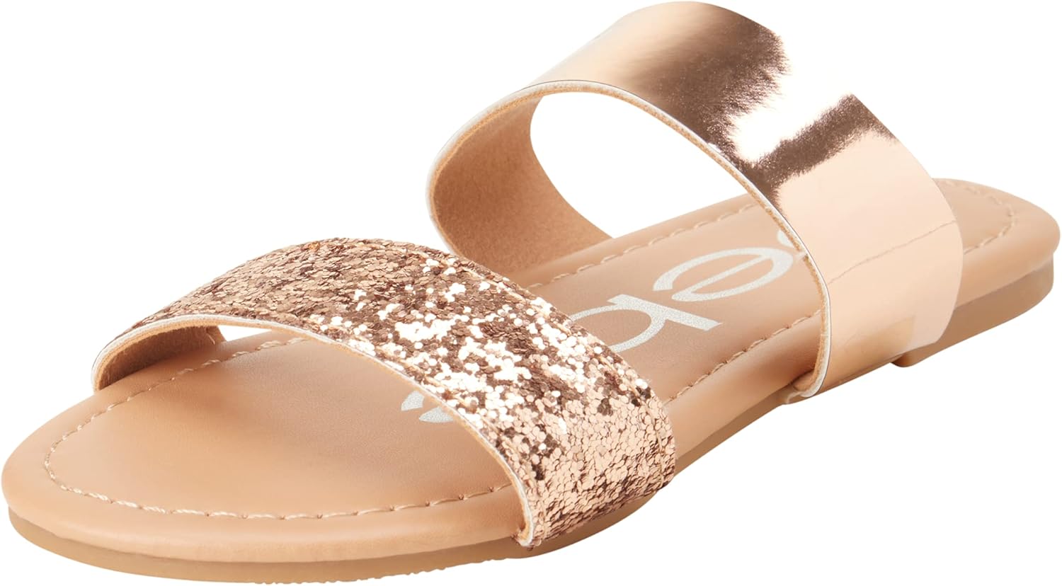bebe Toddler Girls Sandals - Glitter Two Strap Open Toe Slip On Flat Dress Summer Kids Sandals for Toddlers