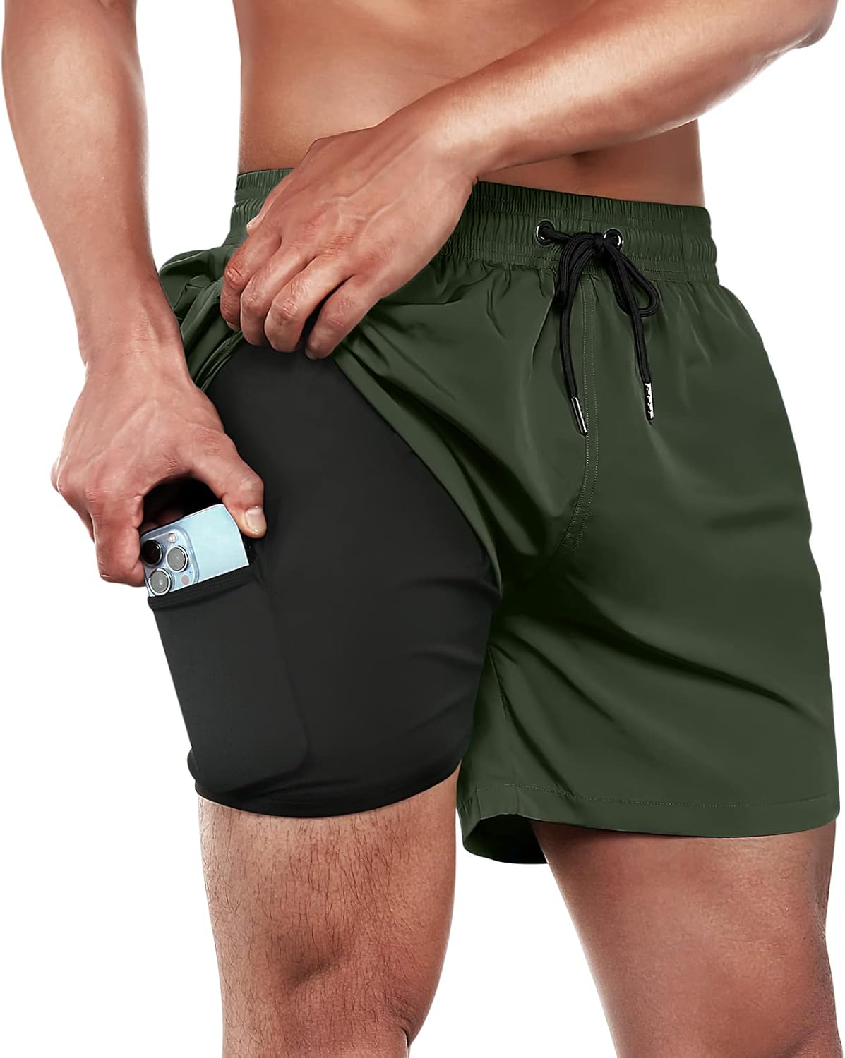 BRISIRA Mens Swim Trunks Swim Shorts Quick Dry 5 inch Inseam Beach Shorts with Compression Liner and Zipper Pocket