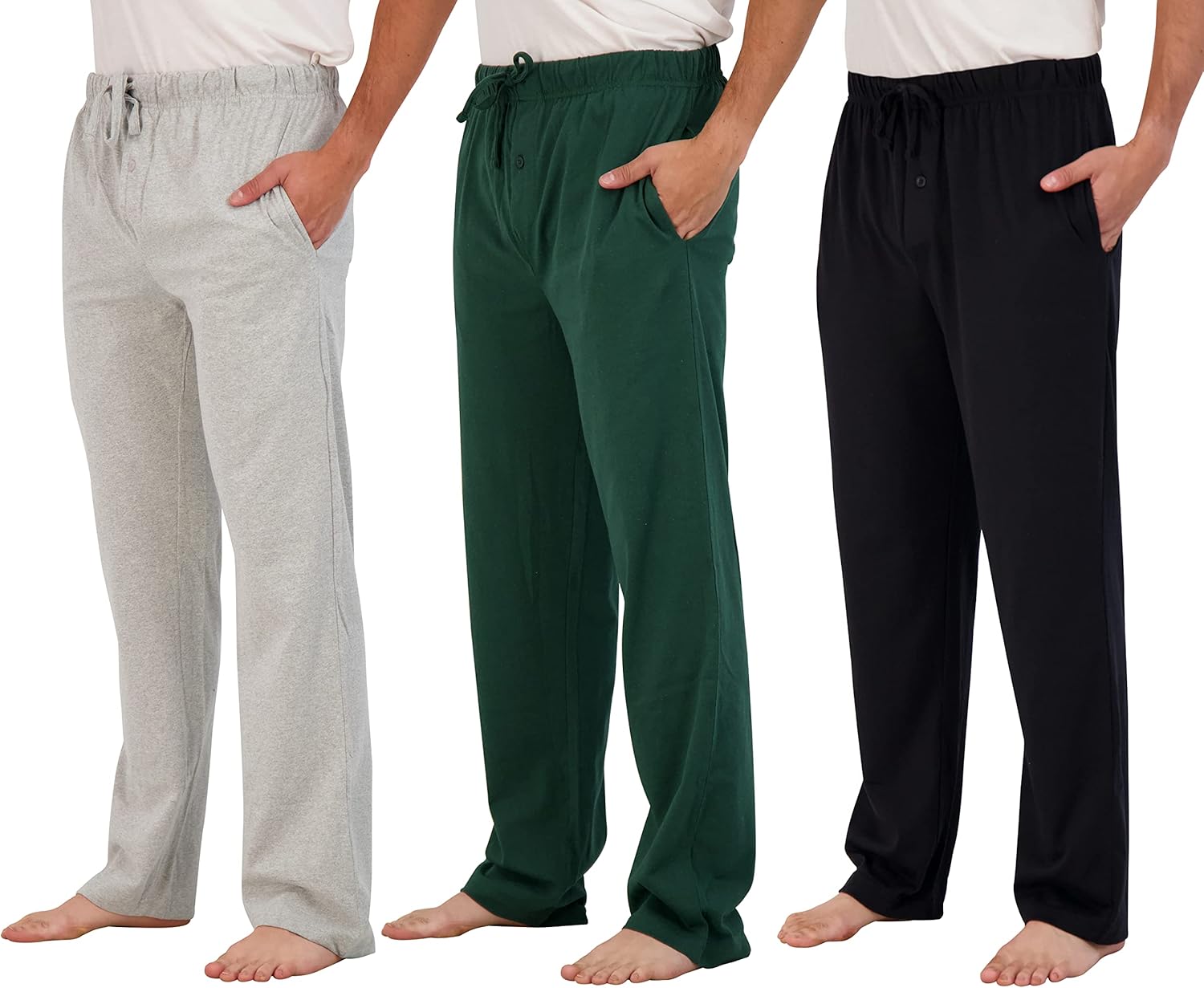 Real Essentials 3 Pack: Men's Flannel & Cotton Pajama Pants - Lounge Sleep PJ Plaid Bottoms w/Pockets (Big & Tall Available)