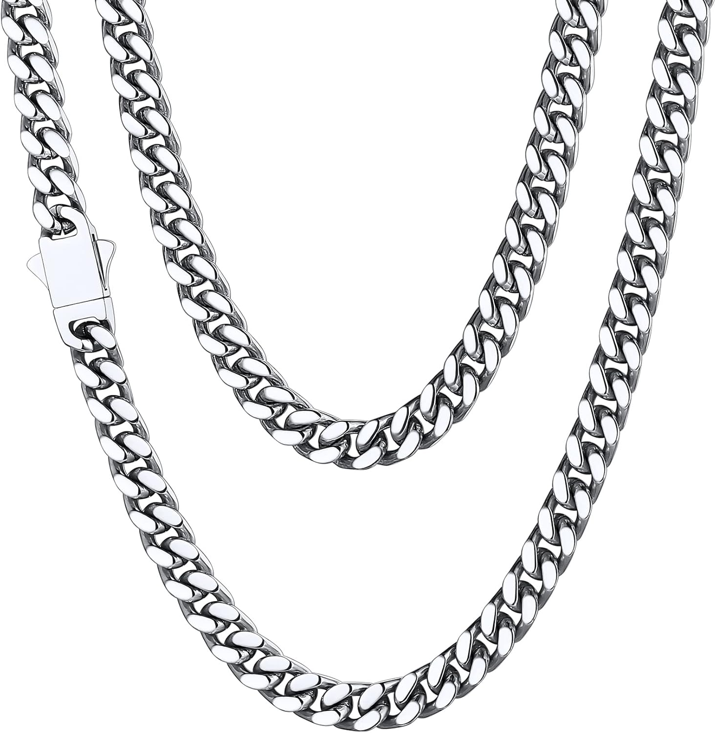 ChainsHouse Stainless Steel Mens Cuban Link Chain, Black/ 18K Gold Plated Miami Cuban Chain Necklace, 5mm/7mm/9mm/12mm/14mm Width, No Tarnish& Durable Hip Hop Mens Jewelry, 18"-30", Send Gift Box