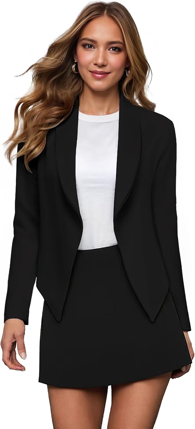 Hybrid & Company Womens Casual Work Office Blazer Open Front Heavy Ponti Shawl Collar Long Sleeve Jacket