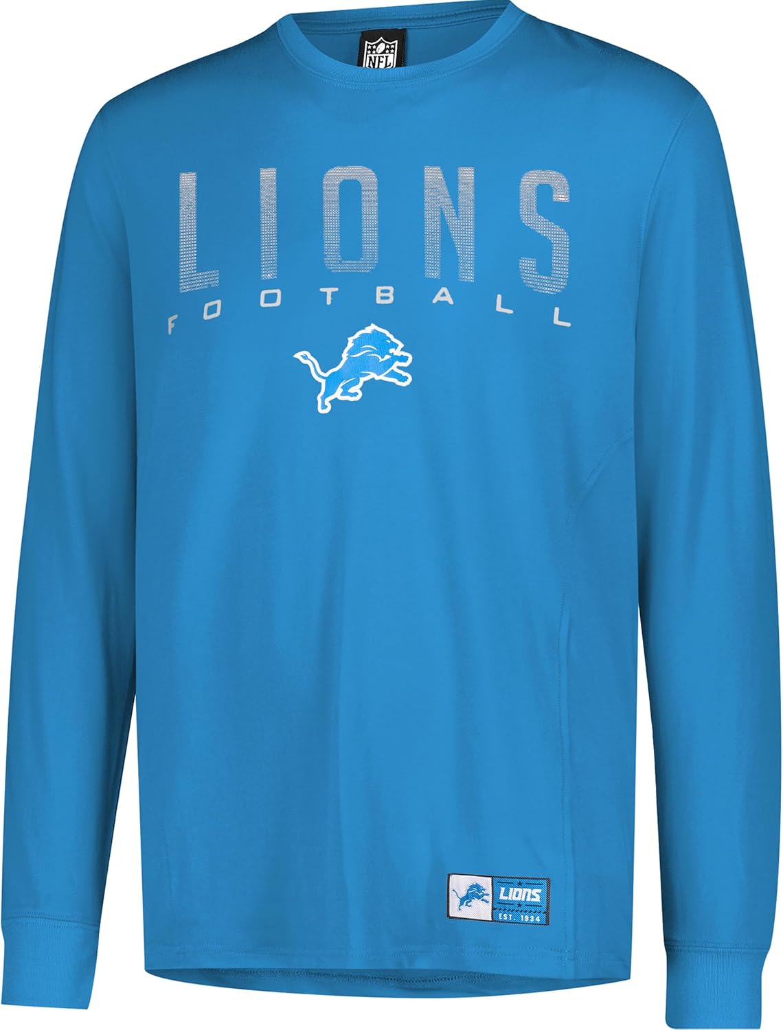STYLE AND DESIGN: Our Long Sleeve T-Shirt features crew neck, regular hemline, long sleeves with ribbed cuffs, team color and gray body with high quality screen print graphics of your favorite NFL team embroidered on the front.