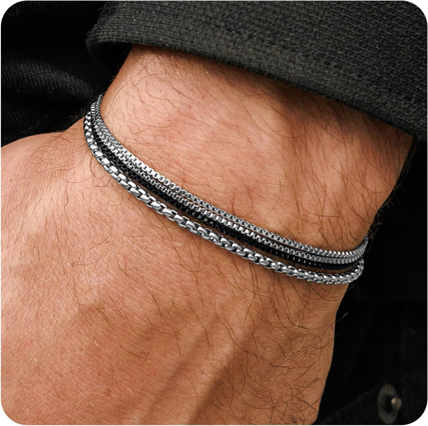 Galis Mens Bracelet - Cuban Link or Box Chain Layered Chain For Men - Premium Stainless Steel, Gift for him, Gold, Silver, Black Bracelet For Men 7-8" Size, 3-5mm Thick