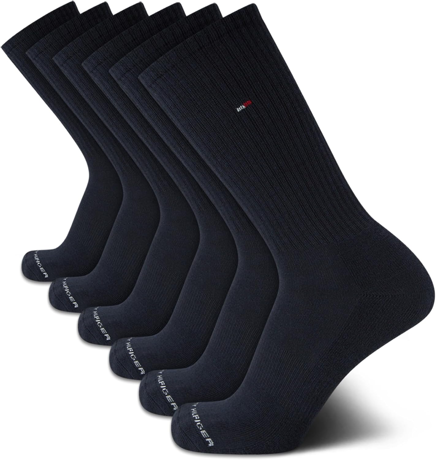 Tommy Hilfiger Mens Crew Socks - 6 Pack Cotton Blend Stretch Cushioned Breathable Athletic Socks for Men