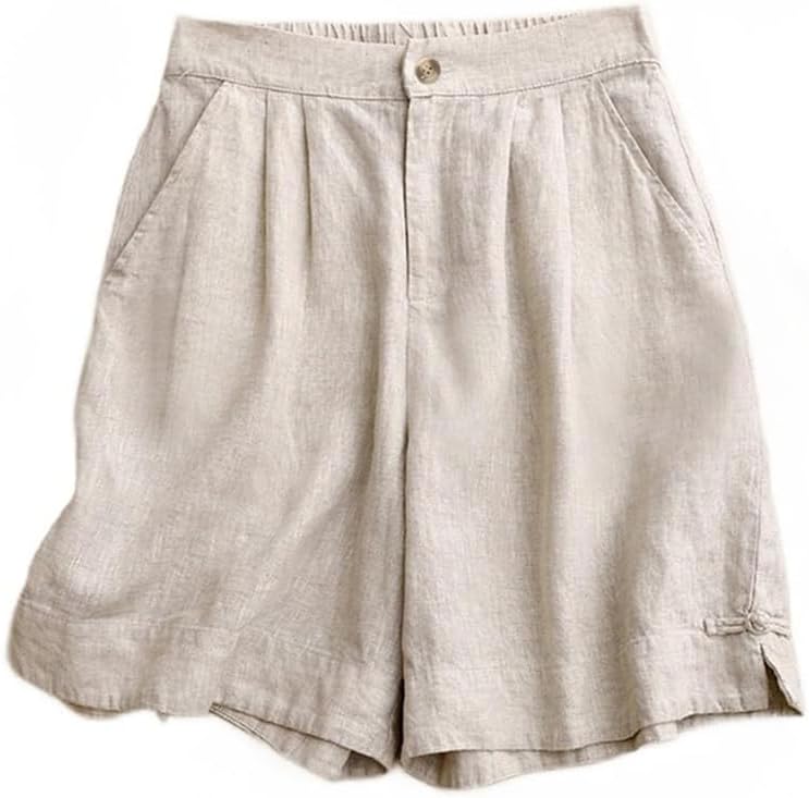 Kinghua Womens Wide Leg Linen Shorts Summer Casual Loose Pleated Elastic High Waisted Bermuda Shorts