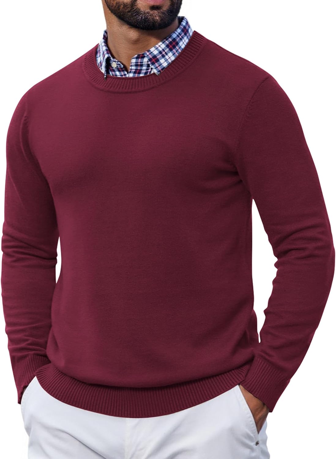 COOFANDY Mens Crewneck Sweater Pullover Knit Sweater Lightweight Sweaters with Ribbing Edge