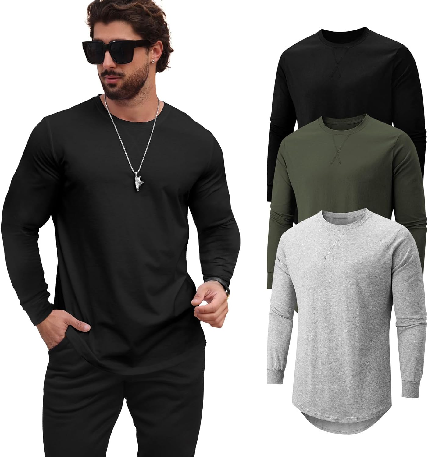 Mens T Shirts Casual Hipster Hip Hop Longline Crewneck Tee Shirts