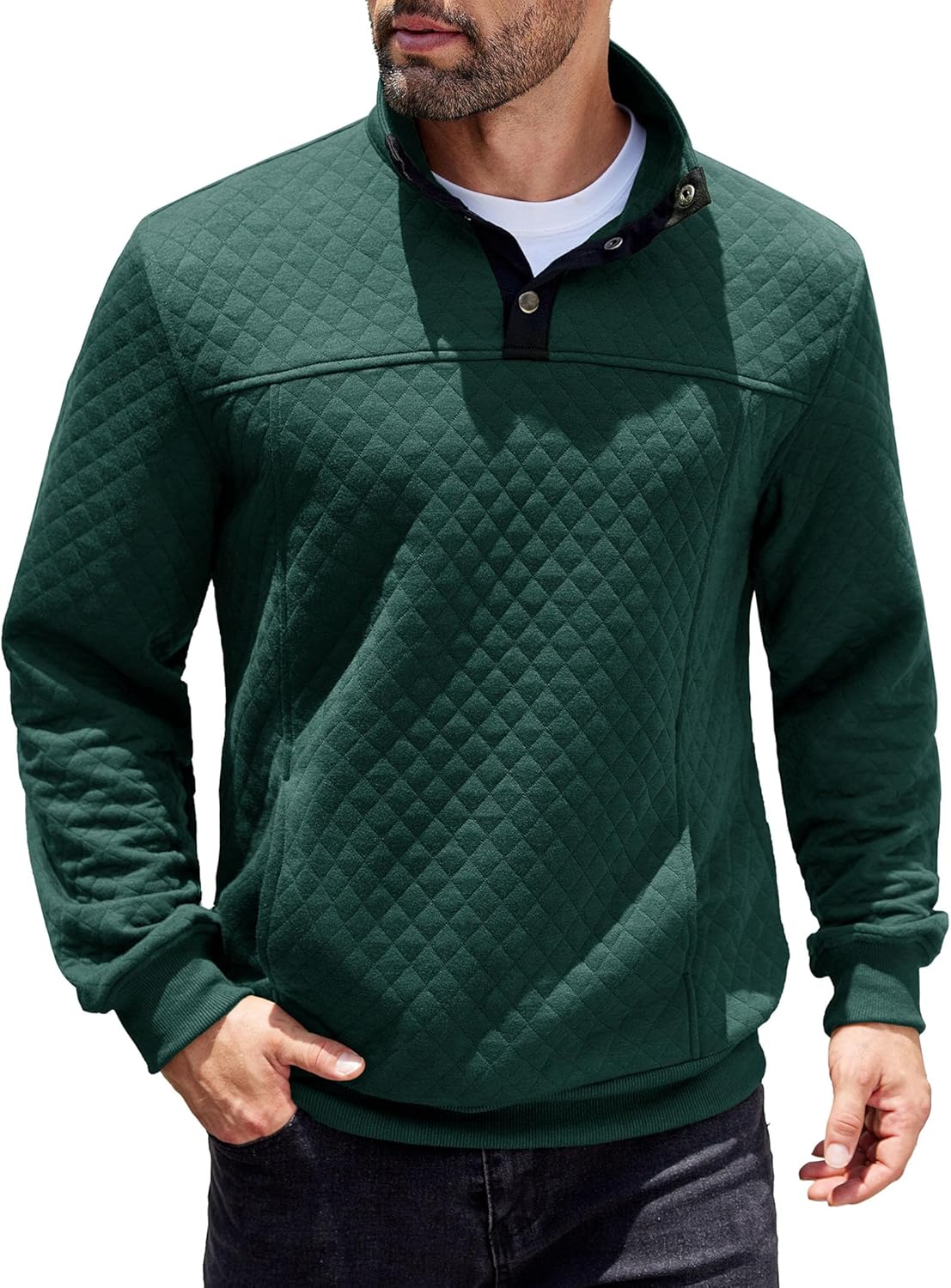 COOFANDY Mens Quarter Sweatshirt Quilted Long Sleeve Mock Neck Active Sweater Waffle Pullover Polo Shirts With Pockets