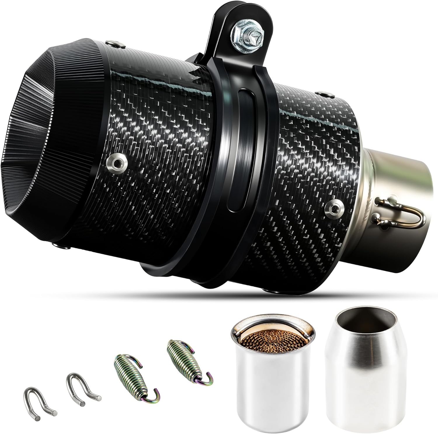 Motorcycle Exhaust, Slip-on Motorcycle Muffler, Carbon Fiber Slip on Exhaust Muffler, Fit for Z900 GSXR750 CBR650 and more, with Complete Accessories, Black