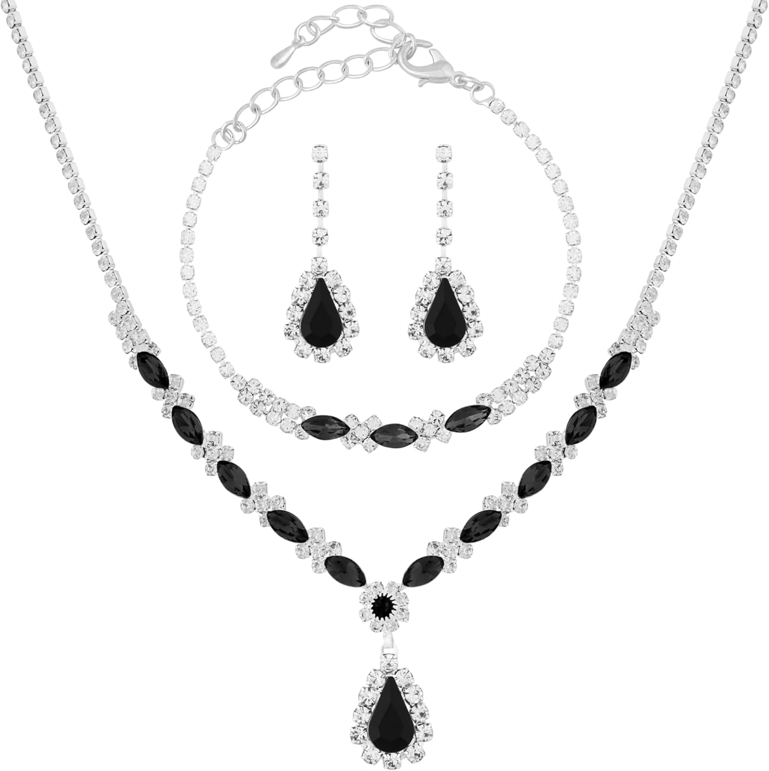 Sacina Bridesmaid Jewelry Set, Teardrop Rhinestone Necklace, Bracelet and Earrings Set, Wedding Jewelry, Vintage Necklace, Christmas Jewelry Gift