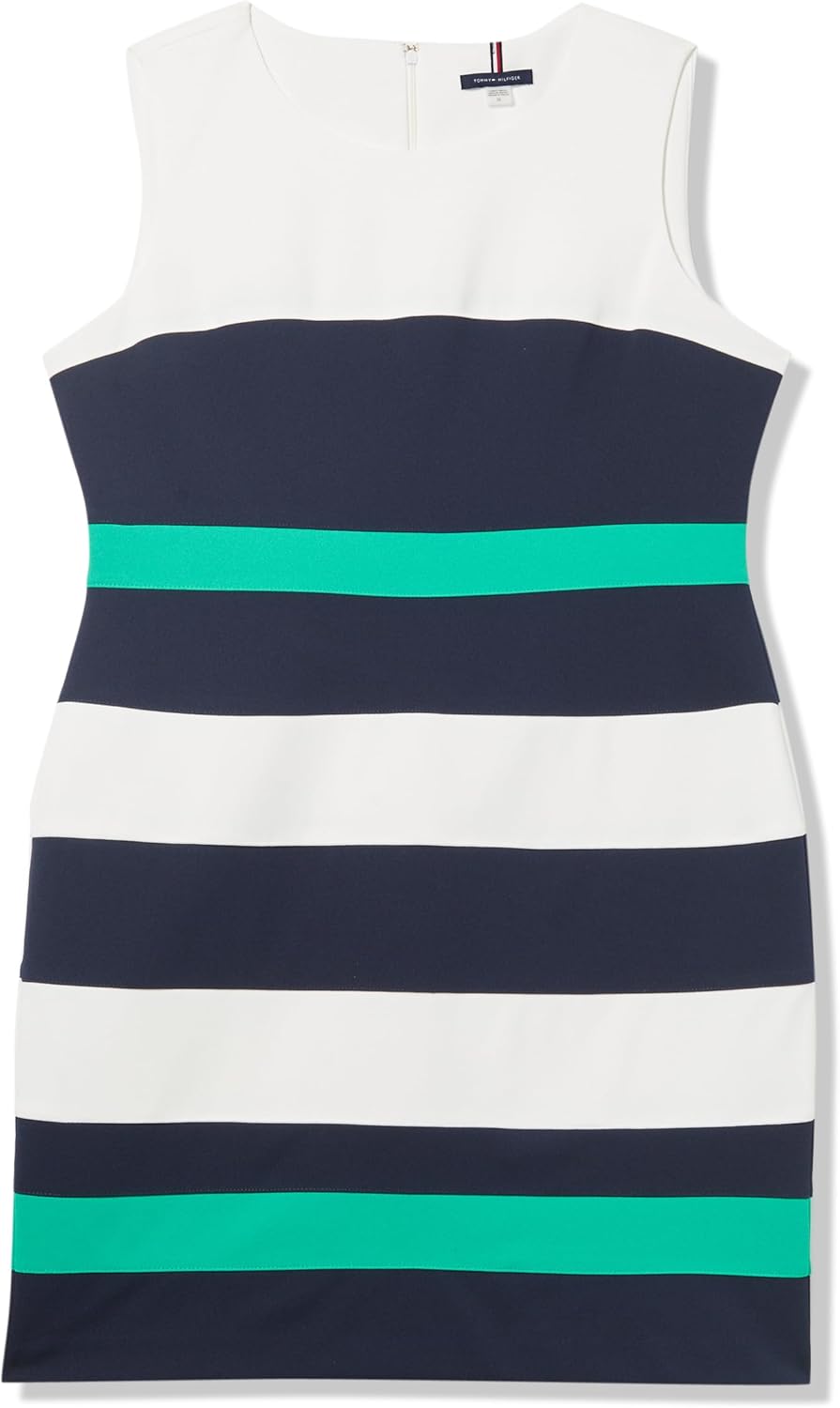Tommy Hilfiger Women's Sleeveless Striped Scuba Crepe Sheath Mini Dress