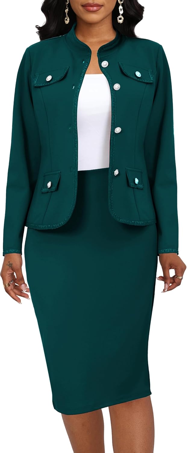 Women 2 Piece Business Suit Elegant Blazer Jacket and Skirt Sets Work Formal Office Clothes Suits