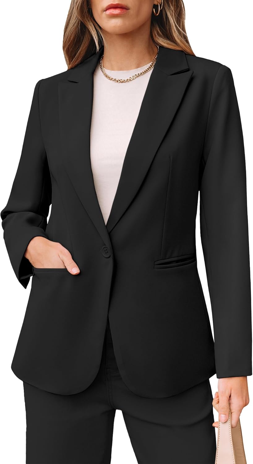 luvamia Dressy Blazers for Women Button Long Sleeve Lapel Business Casual Outfits Office Work Suit Blazer with Pockets