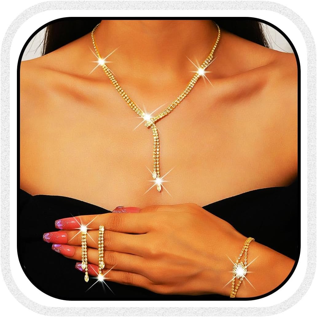 GORAIS Wedding Jewelry Sets Silver Rhinestone Necklace Bridal Prom Jewelry Set for Women and Brides