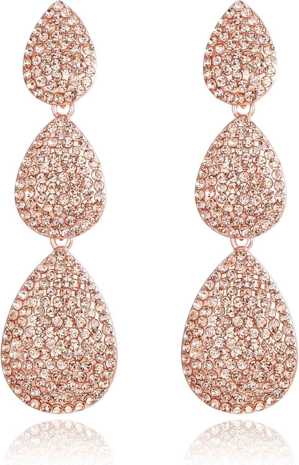Crysdue Art Deco Crystal Teardrop Dangle Earrings, Sparkle Rhinestone Statement Drop Earring for Women Brides Bridesmaides Wedding Formal Prom