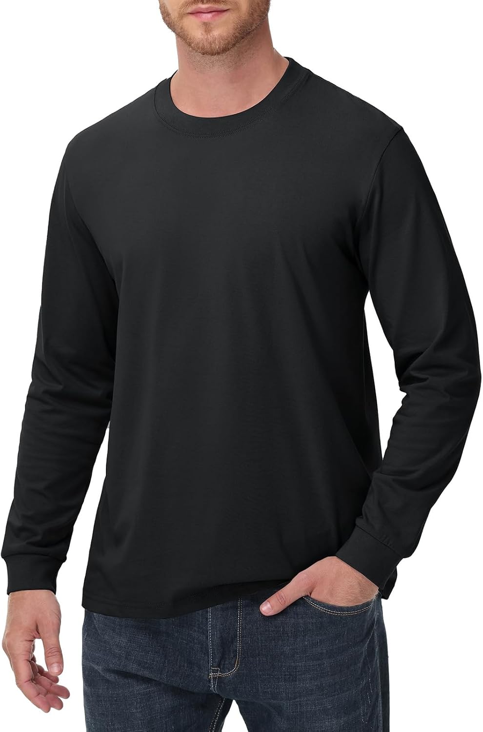 KEEPSHOWING Men's Heavy Weight Long Sleeve T Shirt Crew Neck Comfort Colors Sweatshirt Cotton Thick Pre Shrunk Shirts
