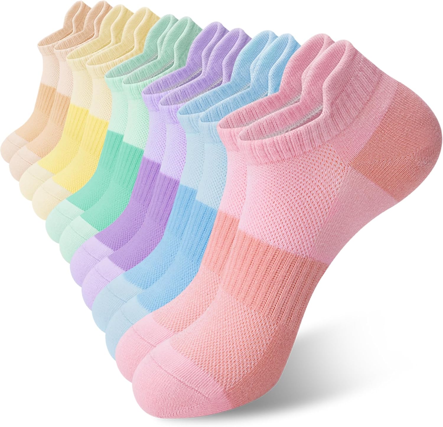 Ankle Socks for Women - 6 Pairs Cotton Low Cut No Show Casual Socks Comfort Breathable RunningProduct Features- Quality material: The ankle socks for women are made of high quality cotton, soft and comfortable, suitable for everyday wear; Moderate thickness, neither too thin nor too thick, meeting your needs throughout the four seasons- Breathable design: The mesh structure of the cotton socks for women can effectively keep the feet dry and reduce embarrassing odors- Excellent arch support: The womens socks ankle has a compression band at the arch for full athletic support and stability; keep you comfortable and secure while walking, hiking, relaxing and running- Good wear resistance: The good material for this womens running socks enhance wear resistance, whether it is daliy wear, walking, running, or outdoor activities, can resist wear and extend service lifeMeet Your Needs- Size: This womens socks is suitable for womens socks size 7-9; The thin socks women can adapt well to the foot shapes of many people, providing even wrapping and support, thereby reducing friction and discomfort- Color: The cotton socks color is rich and varied, a variety of colors of workout socks can meet different collocation needs, suitable for various occasions and clothing styles- Occasions: This running socks is not only suitable for daily wear, but also very suitable for training, sports, or simple relaxation; These thin ankle socks for women are not only your sports partners but also the highlights of your fashionable outfitsWashing Advice- Support machine and hand washing- Dry in a cool, ventilated place- Avoid direct sunlightPackage Includes6 pairs of womens socks ankleNoteDue to the difference in light and screen resolution, cotton socks for women may be have slight color difference, please understand