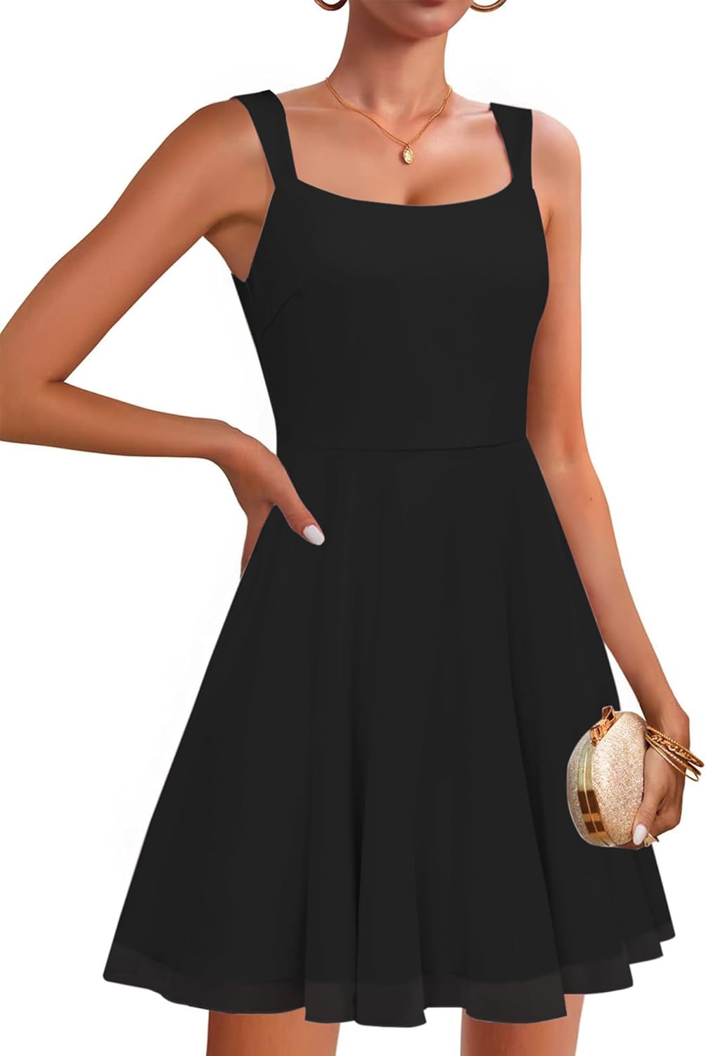Zattcas Womens 2025 Square Neck Sleeveless Fit and Flare Mesh Mini Dress Sexy Cocktail Party Club Night Out Short Dress