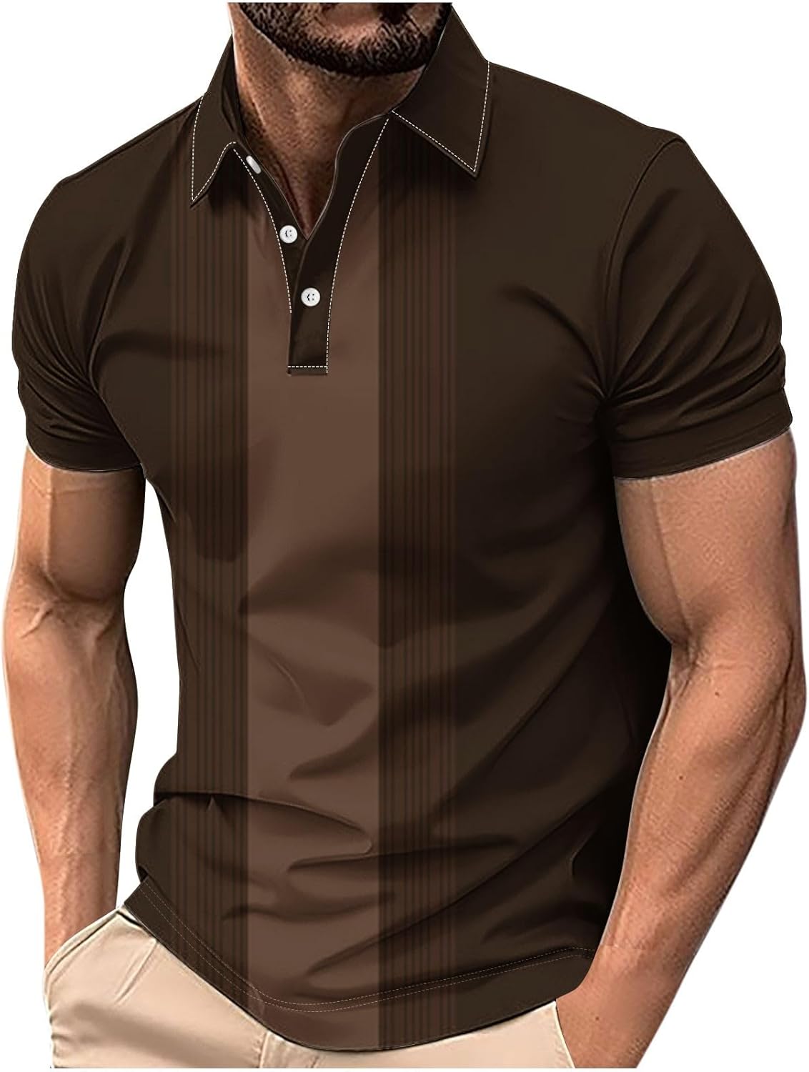 Polos Shirts for Men Vintage Striped Golf Bowling Casual Polos Tee Pullover Men Outdoor Athletic T-Shirts Plus Size