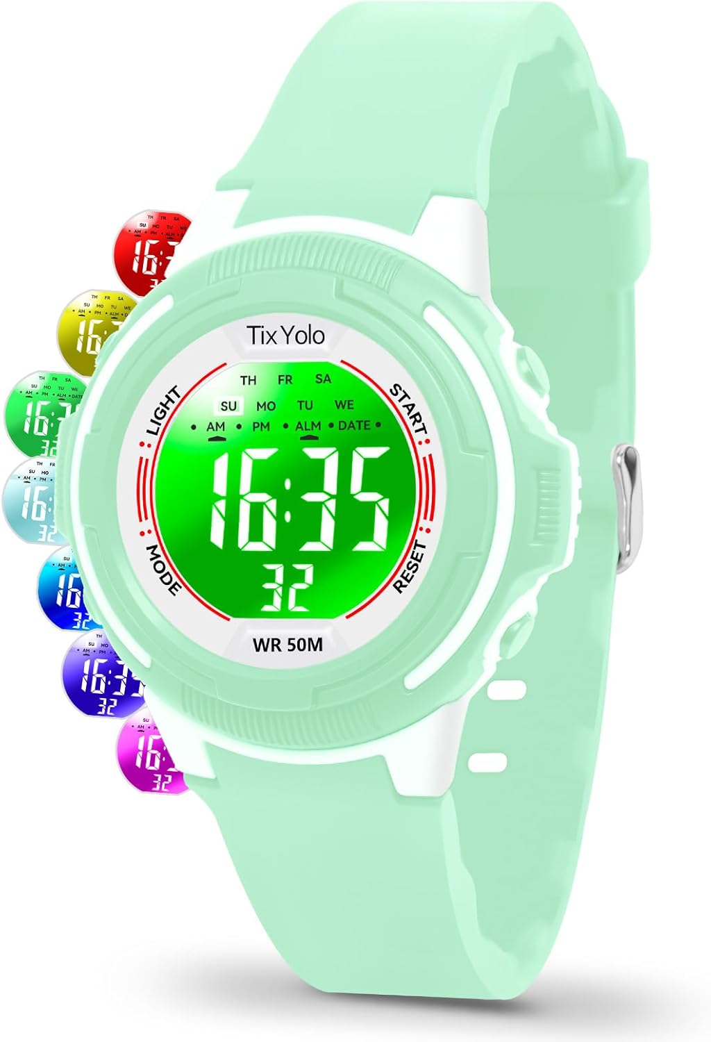 Digital Kids Watch with 7 Color Lights 50M Waterproof,Alarm,Stopwatch,Soft Strap,Children Gifts Sports Watch for Boys Girls 5-12 Years