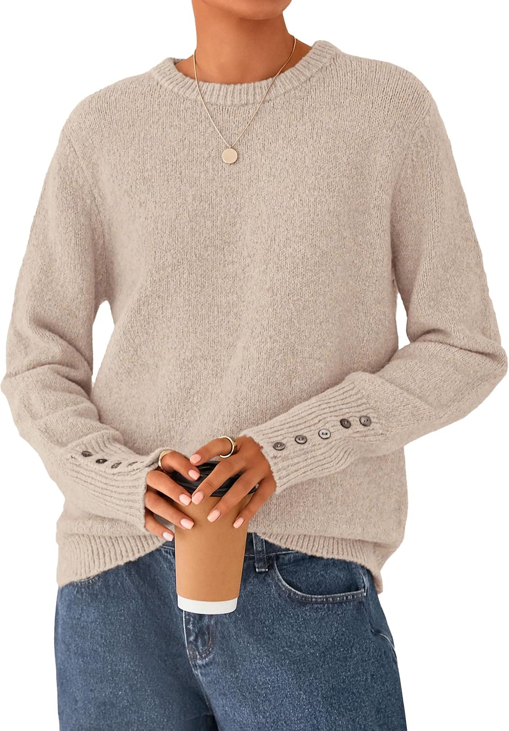 PRETTYGARDEN Fall Sweaters for Women 2025 Cozy Casual Crewneck Pullover Button Long Sleeve Knit Tops Winter Fashion Clothing