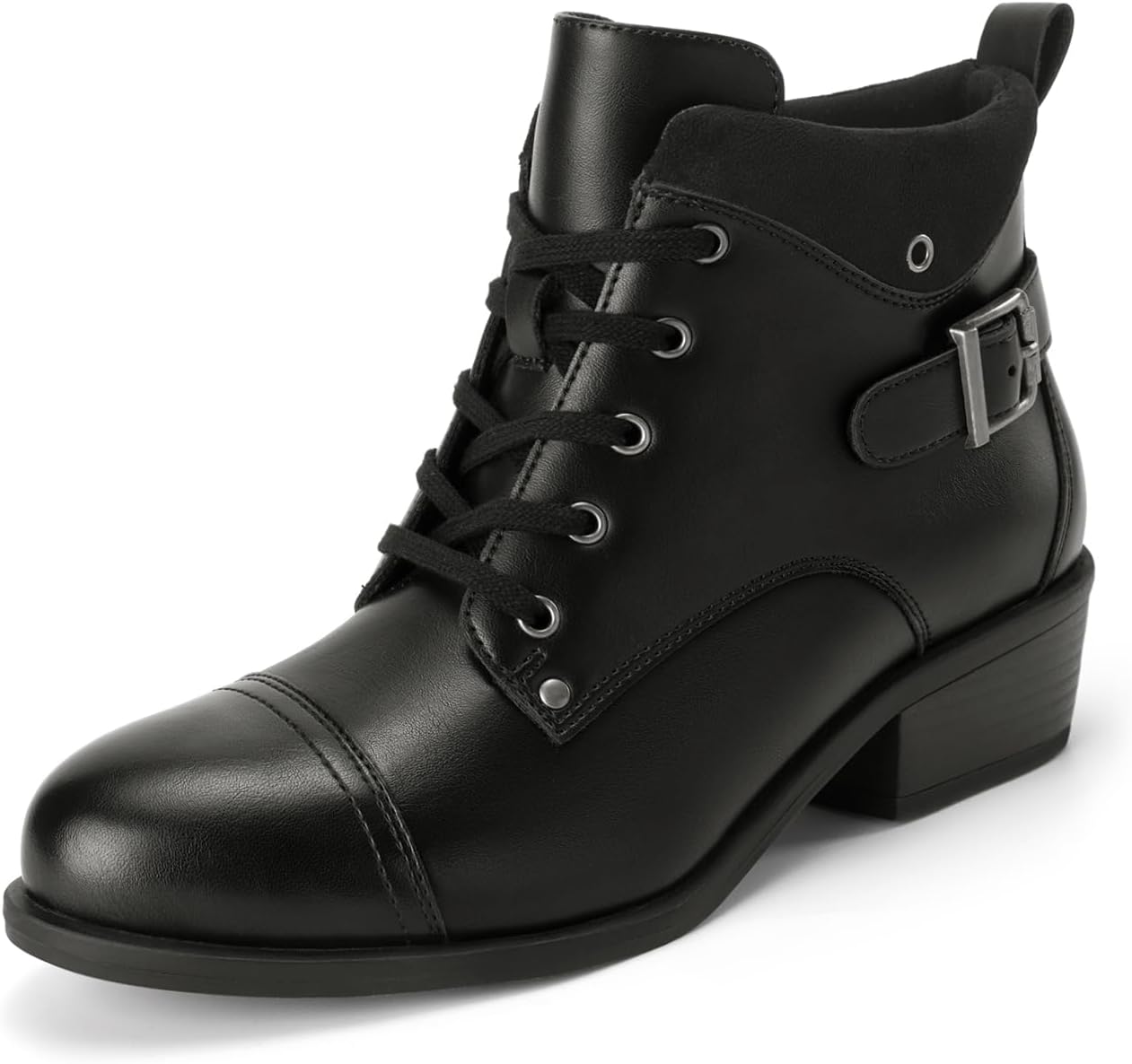 Athlefit Women's Short Ankle Boots Chunky Low Heel Round Toe Boots Comfortable Lace Up Booties with Side Zipper