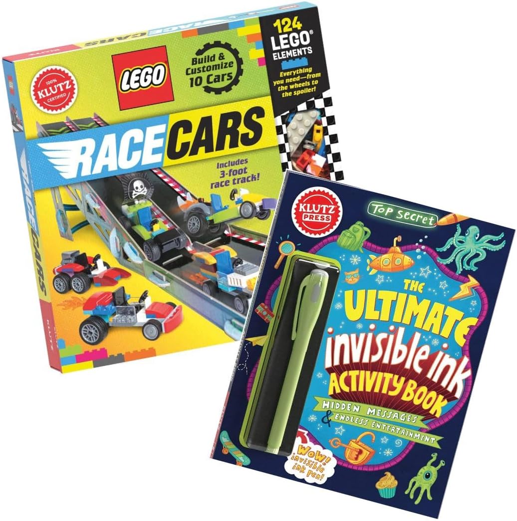 Unleash creativity and excitement with this dual-activity set from Klutz! The LEGO Race Cars kit includes 124 LEGO elements and everything needed to build and customize 10 different racing vehicles, complete with wheels, spoilers, and unique parts. The set features a 3-foot race track for testing your custom creations. Perfect for young engineers ages 8 and up, this hands-on building experience develops problem-solving skills while providing hours of entertainment. As a bonus, the Ultimate Invisible Ink Activity Book adds another layer of fun with hidden messages and secret activities. This comprehensive package weighs 1.2 pounds and comes in a retail box measuring 12.0 x 12.0 x 2.5 inches. The set requires assembly and includes clear instructions for building various car designs. Note: Contains small parts and is not suitable for children under 3 years old. No batteries required - just pure imaginative play combining engineering creativity with mysterious invisible ink adventures!